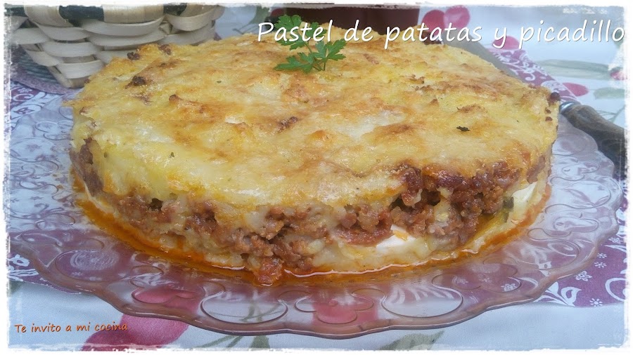 Ahora le toca el turno al picadillo, bien escurrido, pues si no suelta mucha grasa y se queda feo el puré del fondo.