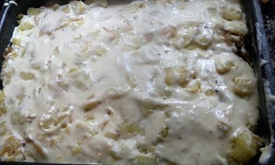 Remueve de vez en cuando y cuando estén tiernas, saca a una fuente de horno. Reserva mientras preparamos la bechamel de cobertura.