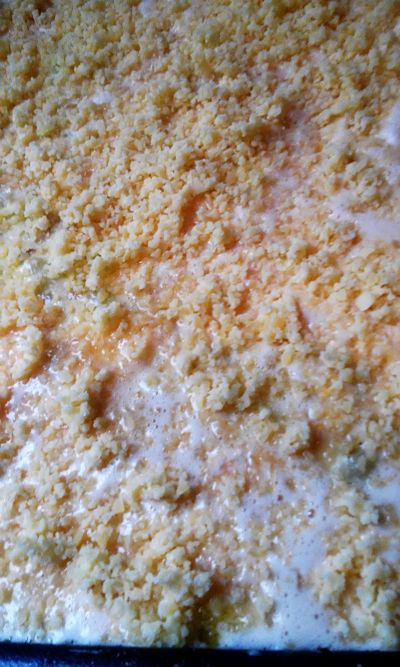 Separa las claras de de las yemas. Bate las claras a punto de nieve y cuando estén montadas, no hace falta que monten mucho, añade las yemas. Bate todo a la vez y echa encima de la bechamel. Termina poniendo el queso rallado.