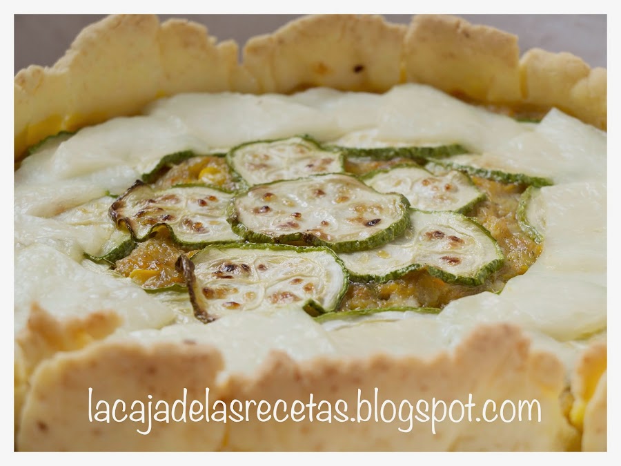 Decorar con el calabacín y el queso en rodajas. Pintar con un poco de aceite y meter al horno de 35 a 40 minutos a 180º.