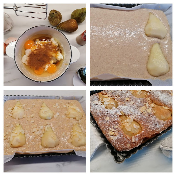 Pastel de peras y almendras, elaboración: