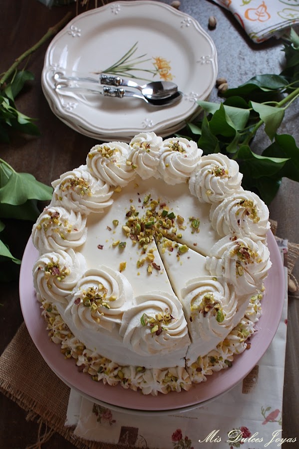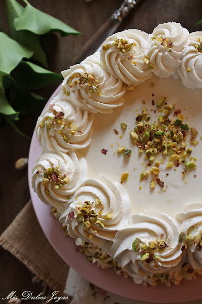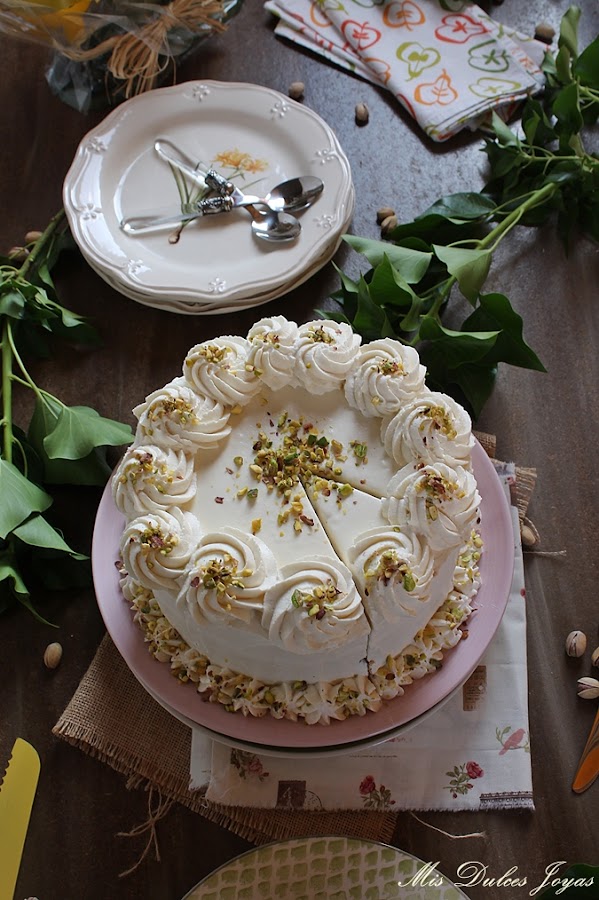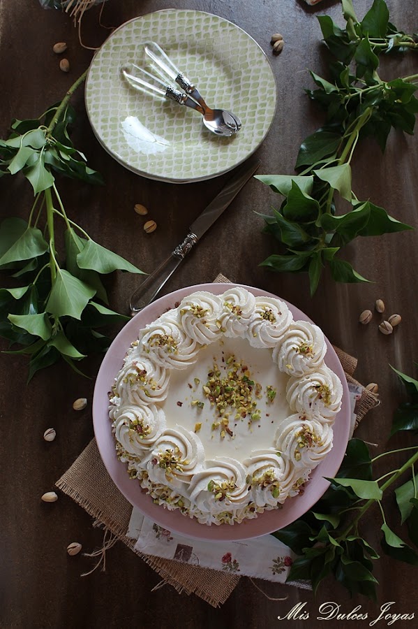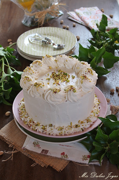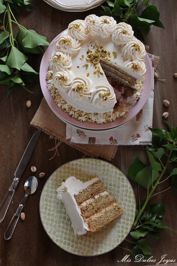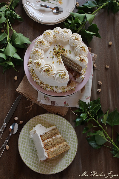 Hoy, como podéis ver, vienen empleados para preparar este riquísimo Layer Cake de pistachos y queso. ¡Ésta combinación es una delicia! Nunca me imaginaria que los pistachos combinarían tan bien con el queso.