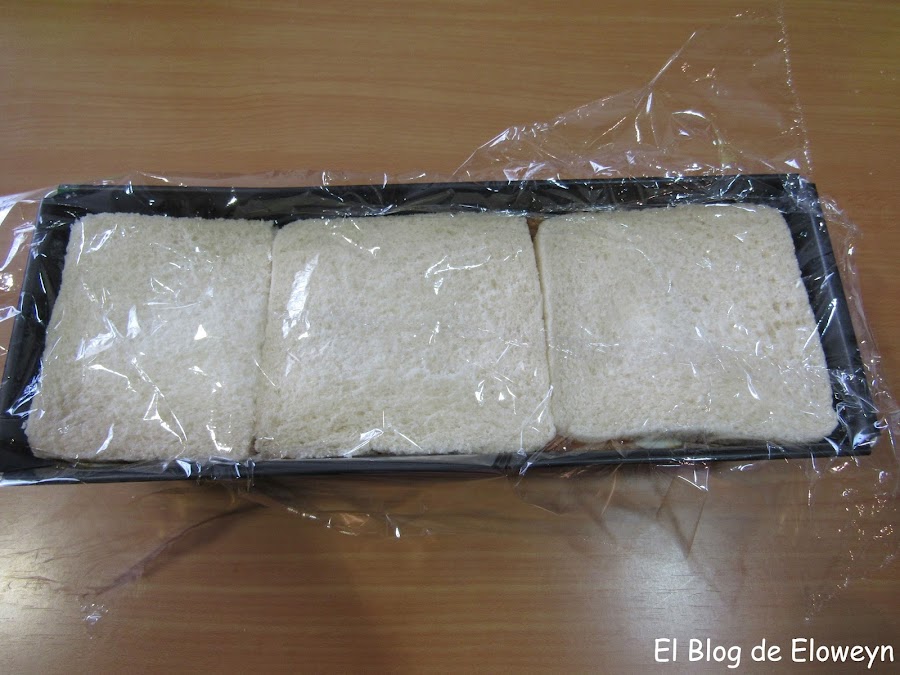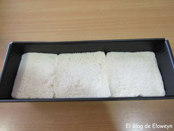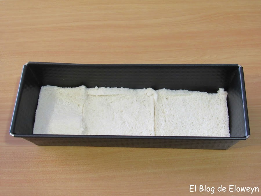 Ponemos una primera capa de pan de molde en la base. Ha de quedar toda la base cubierta.