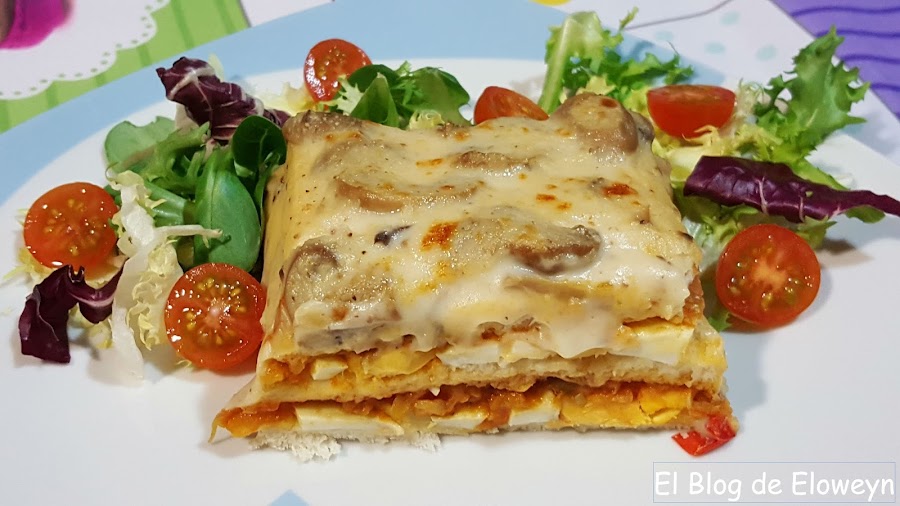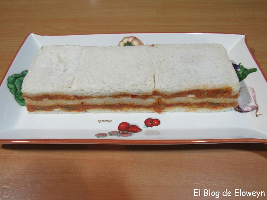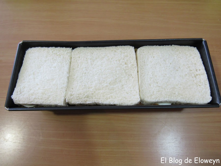 Cubrimos la segunda capa de pan de molde con la otra mitad del pisto.
