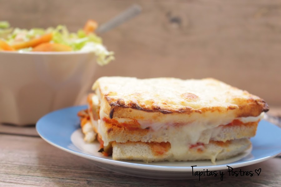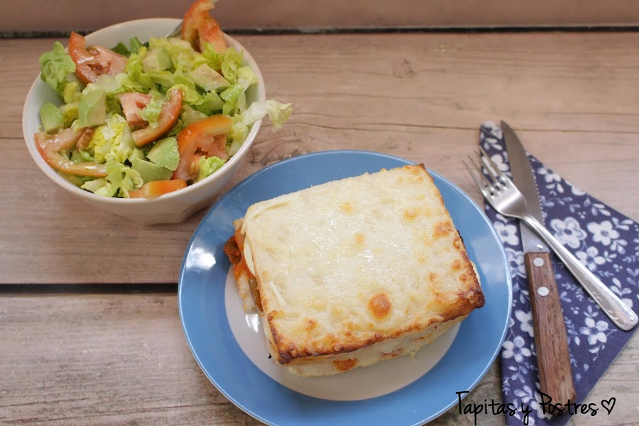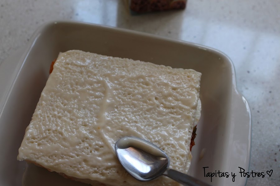 Como lo he hecho solo para mi y en formato individual, mas que un pastel parece un mega sandwich. ¡Riquísimo!