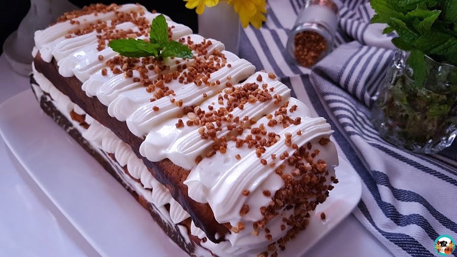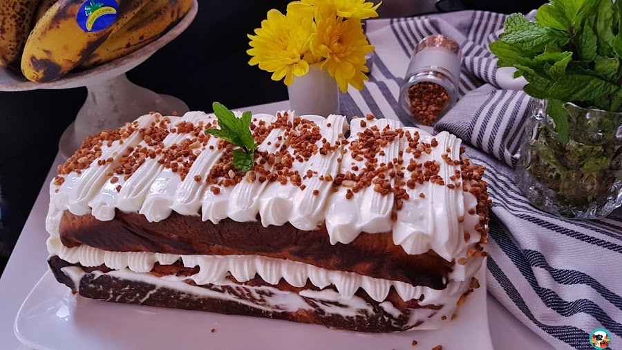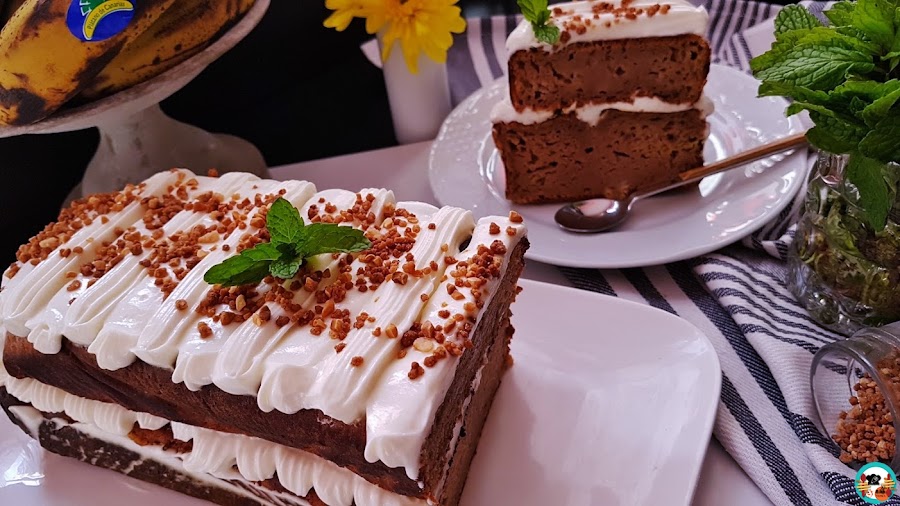 Hoy toca cocina dulce con este fabuloso pastel de plátano, queso crema y crocantes de almendras.