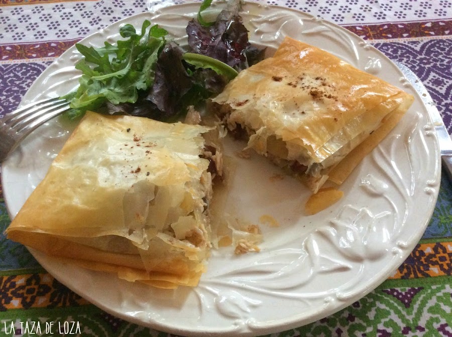 Al hacerlo con masa filo lo puedes doblar de muchas maneras, que te quede o bien como un gran triángulo, o como estos míos con forma de rectángulo. Lo importante es que el relleno no se salga. ¡La imaginación al poder!