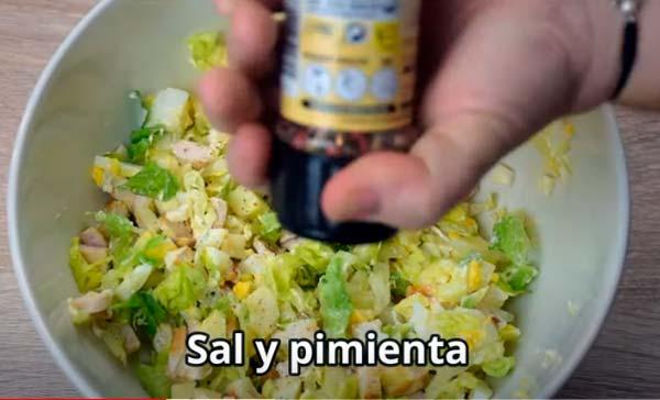 Mezclamos bien, ponemos sal y pimienta recién molida.