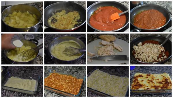 Elaboración del pastel de pollo y patatas muy fácil:
