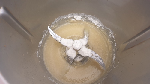 5- Bechamel: Sin lavar el vaso, 1 cda. sopera de aceite y mantequilla, 1 min., Varoma, vel.1. Agregar la harina, 2 min., 100º, vel.2. Leche, sal, nuez moscada y pimienta negra. Unos 4-5 min., 100º, vel.4.