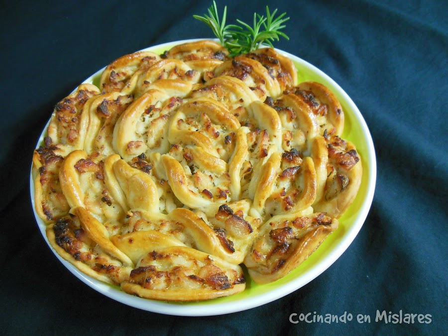 Lo vamos colocando en un molde pincelamos con el huevo batido y horneamos unos 30 minutos a 200º