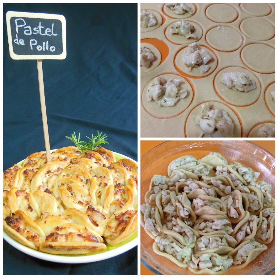 Colocamos un poco de la mezcla de pollo en cada disco de masa. Cerramos por la mitad.