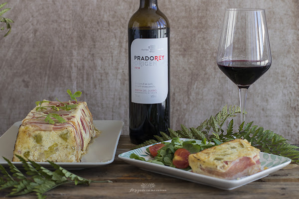 En esta ocasión hemos acompañado este pastel con un vino tinto joven de las bodegas Prado Rey Se trata de un vino joven con una ligera crianza en barrica y maduración en tinaja de barro. El resultado es un tinto sabroso, comedido y muy bebible con equilibrio y consistencia. Podemos adquirirlo a un precio aproximado de 7.25 €.