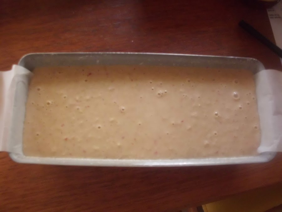 Preparamos un molde de plun cake , lo untamos con margarina y espolvoreamos con pan rallado, y ponemos a lo largo del molde papel de horno, para desmoldarlo facilmente.