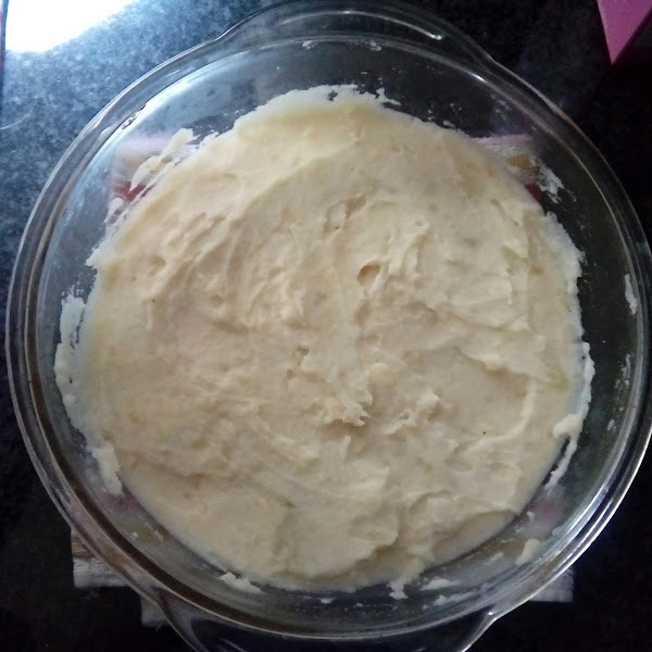Ponemos la mitad del puré en la base de una fuente de horno.