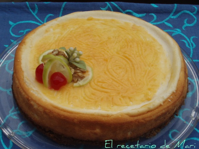 -Derretimos la mantequilla antes de añadir las nueces picadas y la añadimos a las nueces picadas, mezclando bien. -Untamos un molde de 20cm. de diámetro con mantequilla y cubrimos el fondo con la mezcla de mantequilla y nueces, presionando bien la mezcla para que quede prensada. -Calentamos ligeramente unas cuharadas de mermelada de limón y las vertemos sobre el fondo de nueces. Yo el fondo lo cubrí con la crema de limón. Reservamos. -Ponemos el requesón, el mascarpone, el azúcar, la harina, la nata (crema de leche) y el zumo de los limones en la batidora y mezclamos enérgicamente hasta que queden bien integrados todos los ingredientes. Reservamos en un bol. -Montamos las claras a punto de nieve y las incorporamos a la mezcla anterior, suavemente para que no se bajen y queden esponjosas. Introducimos toda la mezcla sobre el fondo de nueces y crema de limón. -Cubrimos el molde con una hoja de aluminio y lo llevamos al horno precalentado aproximadamente a 160º durante 45 minutos. -Una vez cocinado apagamos el horno y dejamos el pastel dentro hasta que esté totalmente frío. -Desmoldamos y lo depositamos en la bandeja de servir. Cubrimos con el resto de mermelada de limón o , en este caso, con la crema de limón antes de servir.