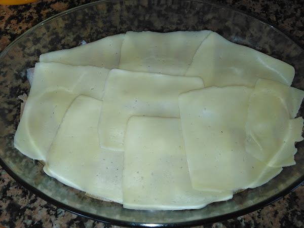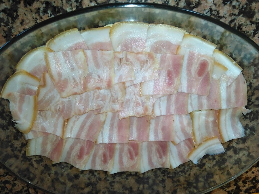 Encima de la cebolla ponemos el bacon, a continuación una capa de queso