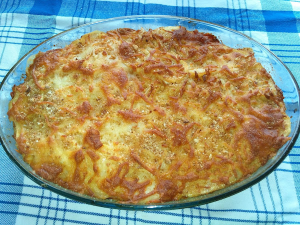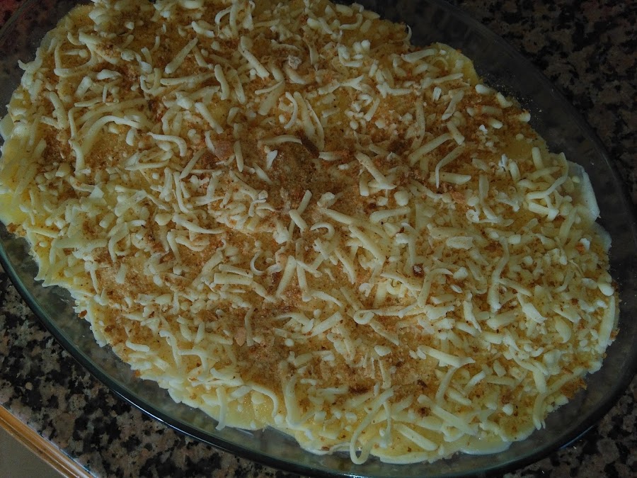 Después del líquido ponemos queso rallado y como siempre hago para los gratinados pan rallado