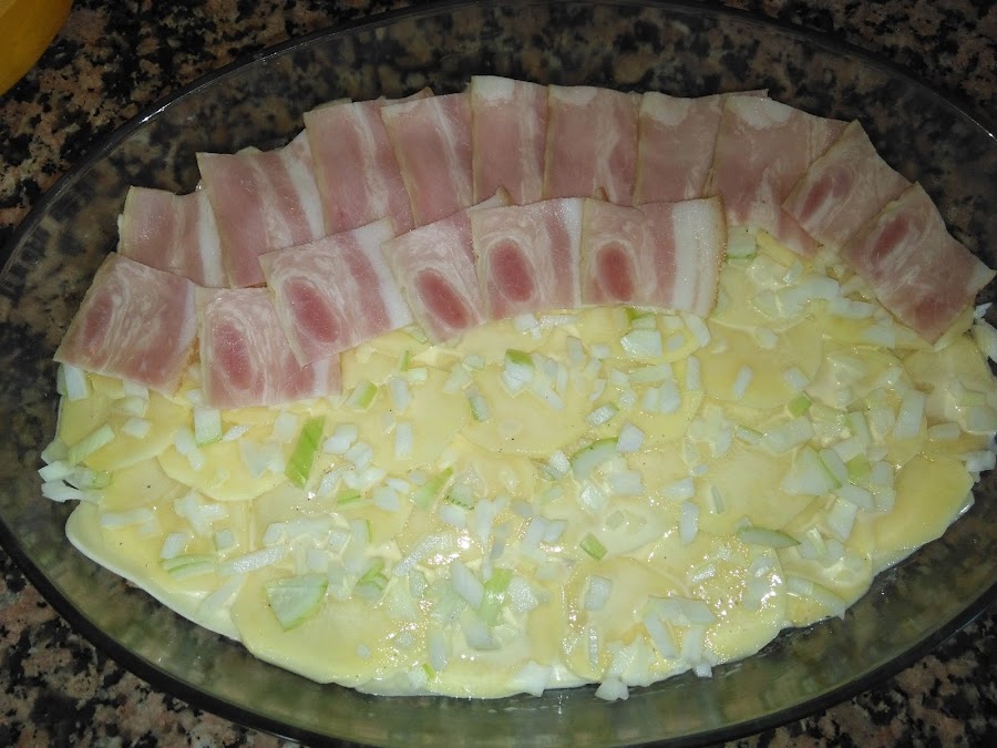 Por cierto si la patata y la cebolla no va cruda se necesitará menos tiempo en el horno.