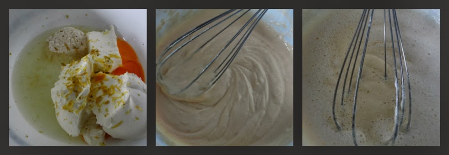En otro cuenco, ponemos el queso crema, el zumo del limón, la corteza rallada del limón y mezclamos bien. Añadimos las yemas de huevo y mezclamos bien hasta que se integren por completo.