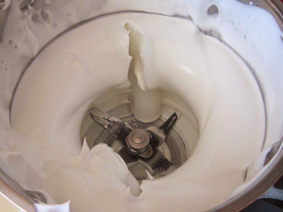 Limpia muy bien el vaso para montar las claras.Pon de nuevo la mariposa y añades las claras, pon velocidad 1 1/2 sin tiempo, añade el gasificante y el azúcar poco a poco hasta que esten firmes.
