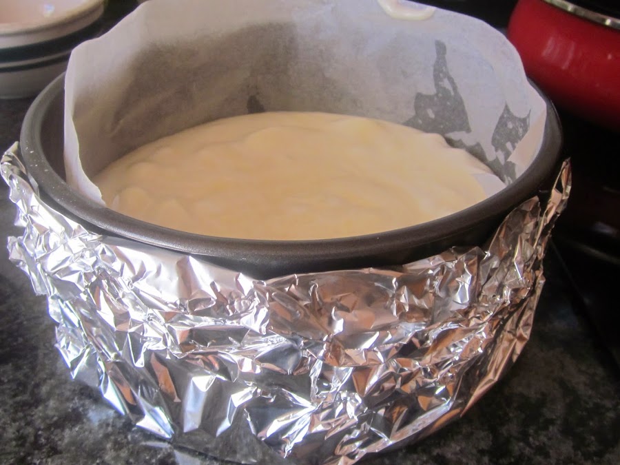 Como el pastel va cocido al baño María ,preparamos un recipiente con agua donde quepa el molde.
