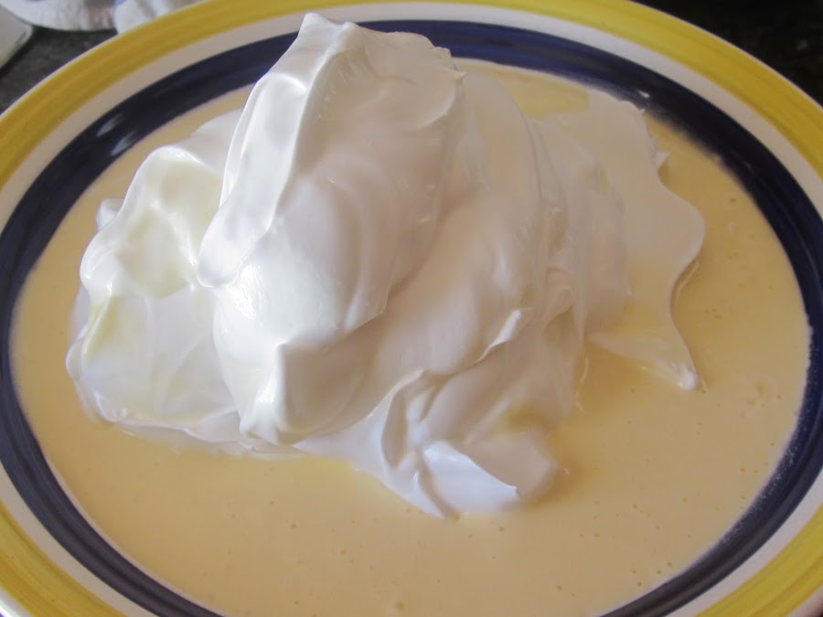 Mezclamos la crema con las claras montadas, suavemente con movimientos envolventes.