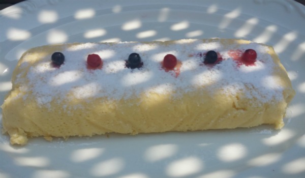 Por esta decoración, esta receta ya no me sirve para el reto de “elaborar una receta con 3 ingredientes o menos”, porque ya tengo que usar un cuarto o quinto elemento. En mi caso he utilizado azúcar glas, arándanos y grosellas.