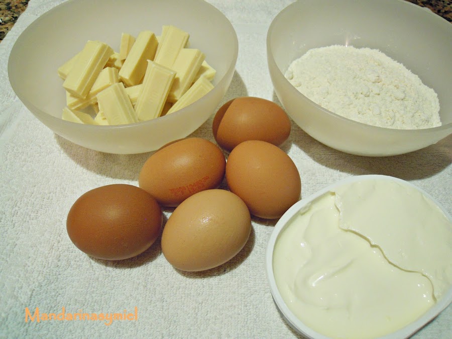 Buscando la receta de este pastel me encontré que habían dos diferentes, esta que os he puesto que se hace con chocolate blanco, y otra que no lo lleva y tiene bastantes más ingredientes. Esta en casa nos ha encantado, pero otro día probaré la otra receta y podremos comparar.