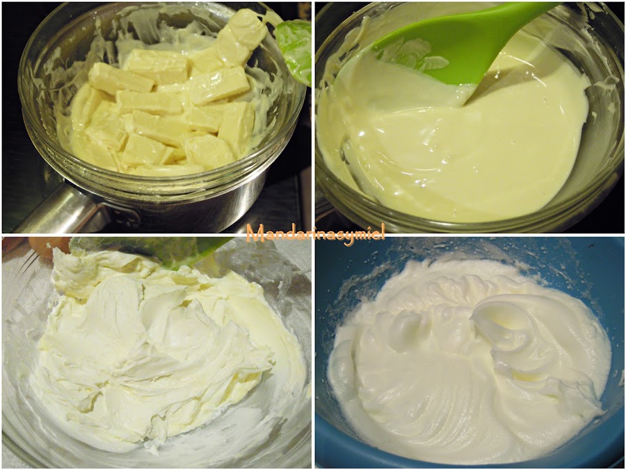 Funde el chocolate blanco al baño maría sin dejar de remover hasta que sea una crema lisa.