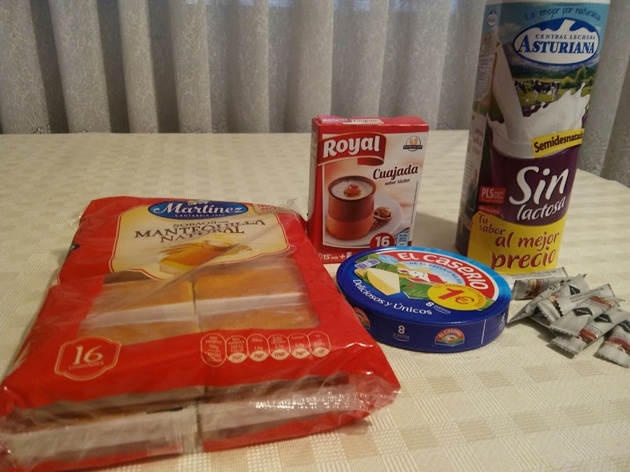En un bol se ponen doce pasiegos desmigados con ocho quesitos y se mezclan hasta hacer una pasta. Se añade el azúcar, la leche y los sobres de cuajada y se mezcla todo.
