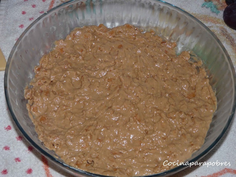 1 vasito de moscatelEn un cuenco se baten el moscatel junto con la mitad del azúcar, la mantequilla atemperado y las galletas desmenuzadas formando una pasta.