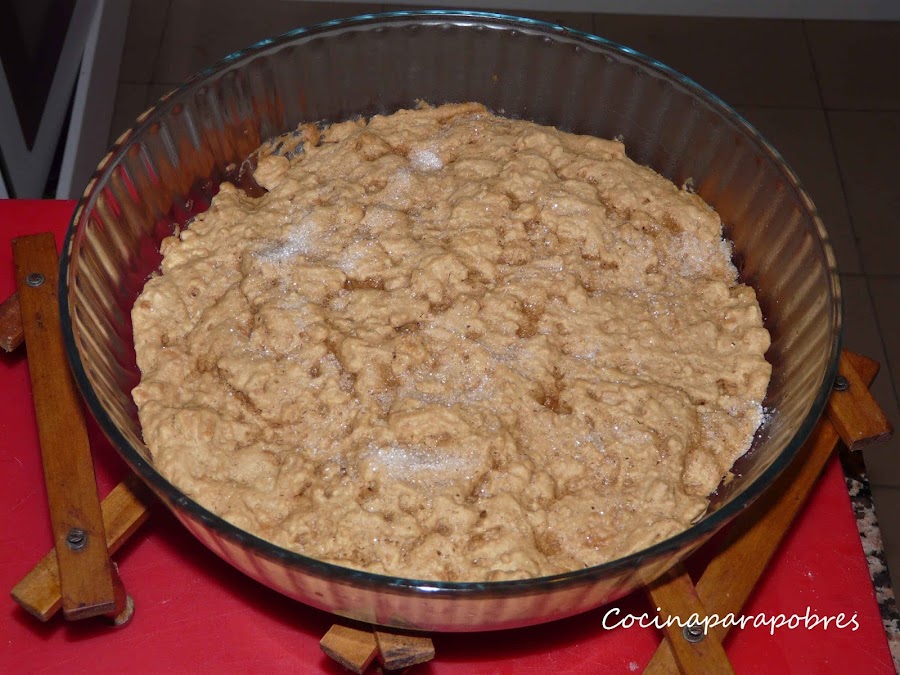 Con la pasta obtenida forramos la base de un molde previamente engrasado o forrado con papel de hornear, con el horno precalentado a 170 º C horneamos durante 15 minutos.