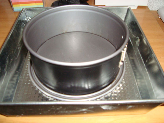 Poner en el horno al baño maria, que el agua sea caliente y que cubra las tres cuartas partes del molde, yo lo puse en otro molde más grande.