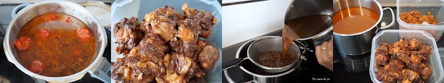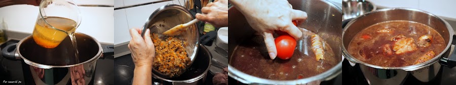 Para continuar la cocción de la carne hay dos opciones: la más tradicional, cuatro horas de chup-chup en cazuela, y la más "rápida", dos horas en olla a presión. Hemos optado por esta última.