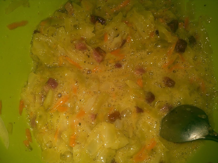 Cocer la mitad del repollo en abundante agua y luego picar.