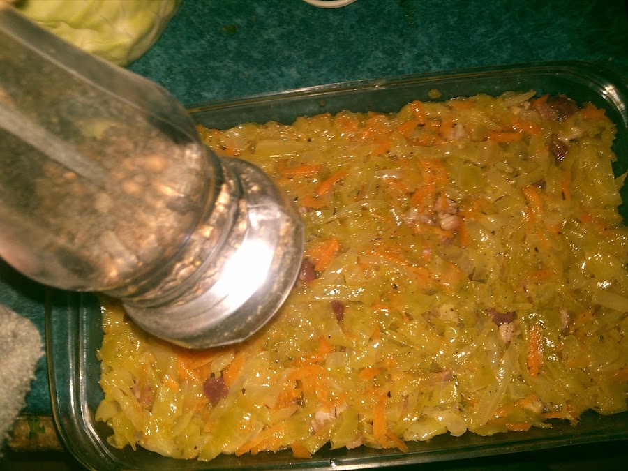 Disponer en una fuente para el horno, yo personalmente agrego la pimienta en este momento por que le pongo solo a la mitad ya que a mi padre no le gusta.