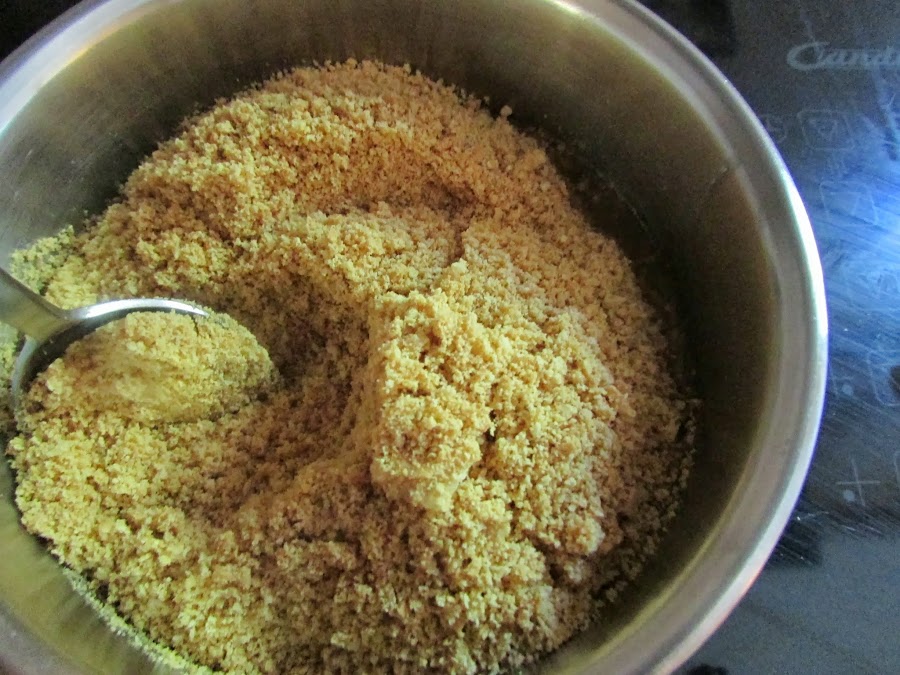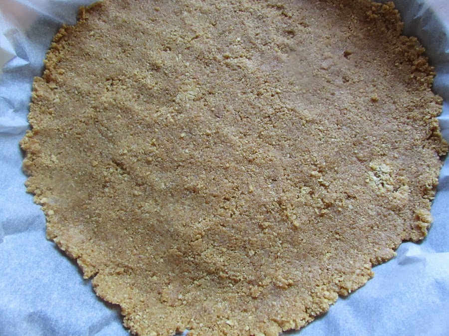 Se trituran las galletas y se mezclan con la mantequilla y las 4 cucharadas de azúcar