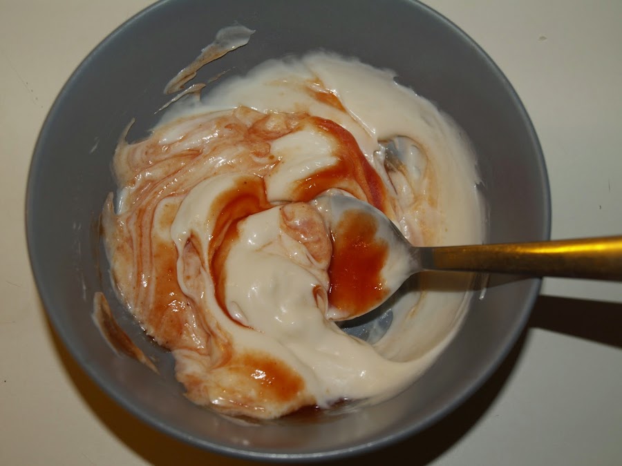 - Para servir lo podemos acompañar de una salsa rosa. En mi caso hice una muy sencilla, que fui probando hasta que me gusto. las hay mejores y mucho más elaboradas, pero como yo no me se ninguna muy bien, tiré por algo sencillo. Por cada cucharada de Ketchup pise tres de mayonesa más un chorrito de vinagre balsámico. Yo soy muy de vinagre, pero si veis que puede quedar muy fuerte usad otro más suave, como el vinagre de manzana por ejemplo.