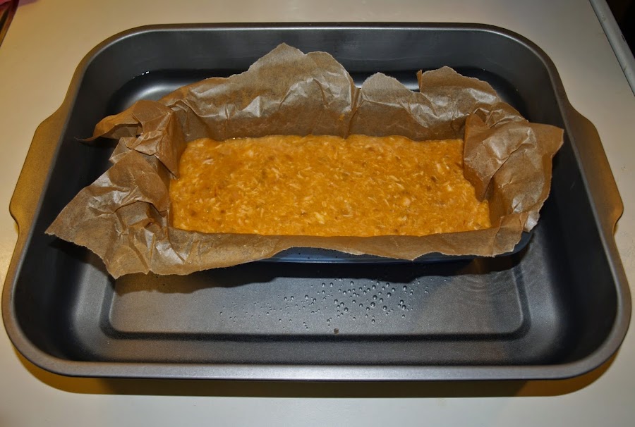 - Salpimentamos, volvemos a mover y pasamos la mezcla a un molde previamente engrasado o, como hice yo, forrado de papel de horno.