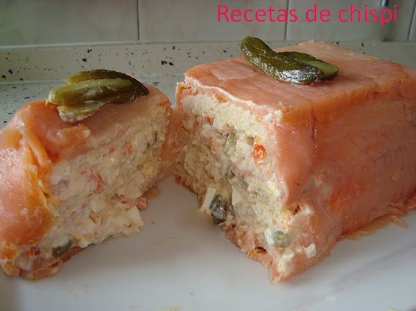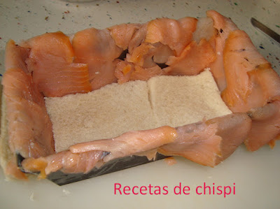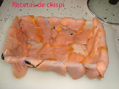 Yo le puse también 4 pepinillos cortaditos en rodajas, porque tenia bastantes y los restos de salmón que me quedaron.