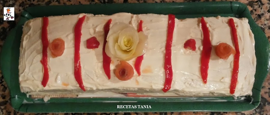 En una bandeja colocamos 3 rebanadas de pan y untamos de mayonesa,encima ponemos las endibias troceadas,el atún y el huevo duro picadito,encima ponemos otras tres rebanadas de pan,untamos de mayonesa y ponemos el salmon picadito con los pimientos del piquillo tambien picado,colocamos otras tres rebanadas encima y untamos todas las rebanadas del pan con mayonesa y decoramos. Yo para decorar puse salmón,una rosa de endibia y unas tiras de pimiento del piquillo. Metemos en la nevera y dejamos enfriar. Está riquisimo y es muy facilito de hacer :D