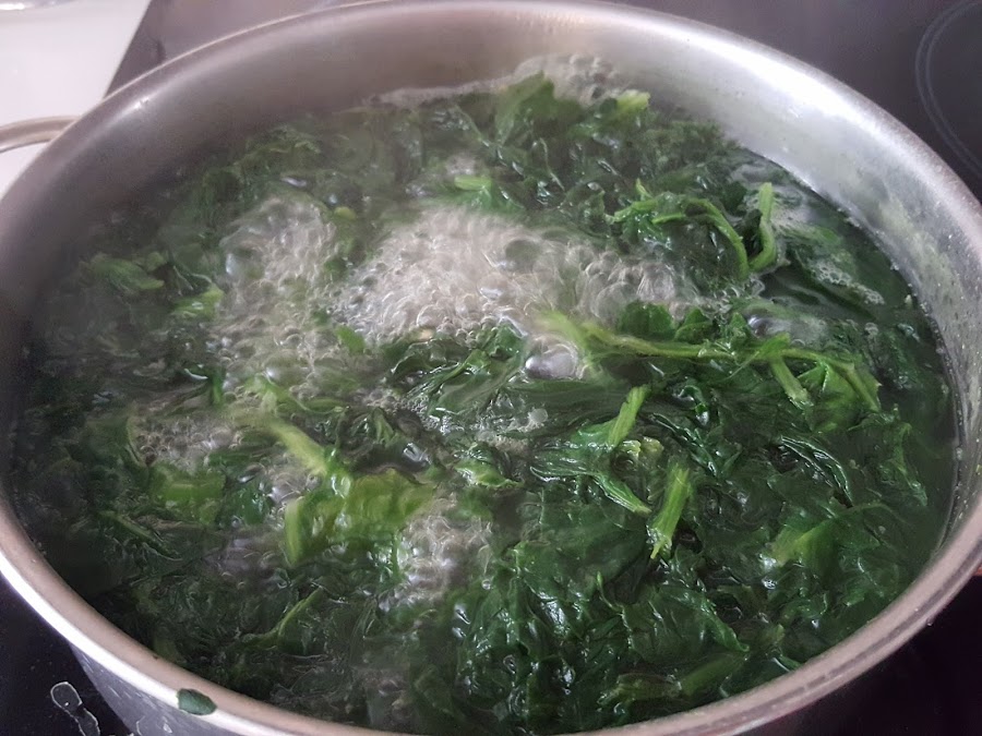 2. - Mientras, hervimos en abundante agua con sal las espinacas.