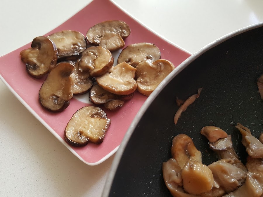 1. - Ponemos las setas en una sartén con un poco de aceite y sal, a fuego medio.