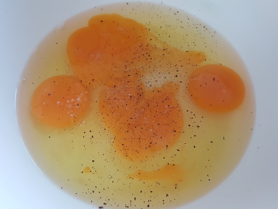 6. - Batimos los huevos con un poco de sal y pimienta.