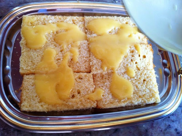 Terminaremos con otra capa de sobaos, y bañando todo el pastel con la crema de limón que nos sobraba.
