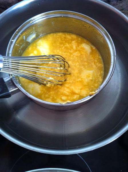 Mezclamos todo, y lo pondremos en el fuego al baño María.