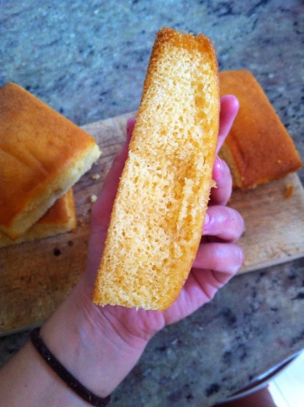 Una vez cocida la leche, y mientras se nos hace la crema de limón, cortaremos los sobaos, a la mitad.