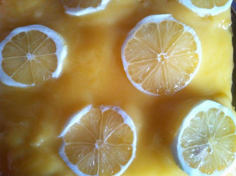 Decoraremos con el medio limón que habremos reservado antes, cortando pequeñas rodajas y colocándolas por encima del pastel.