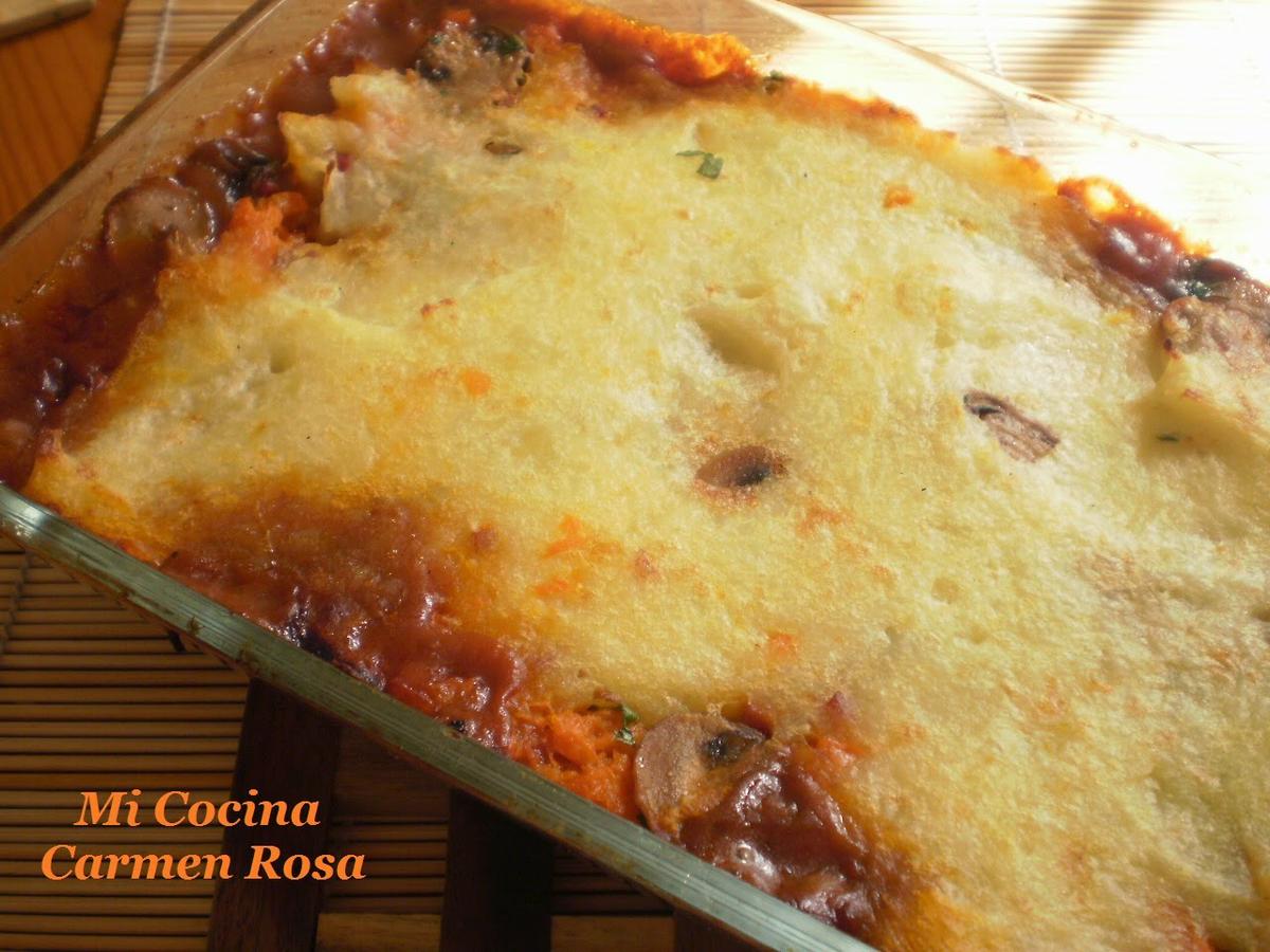 En este punto, procuro dorar el puré de patatas (no suelo añadir queso al pastel de carne?cuestión de gusto).